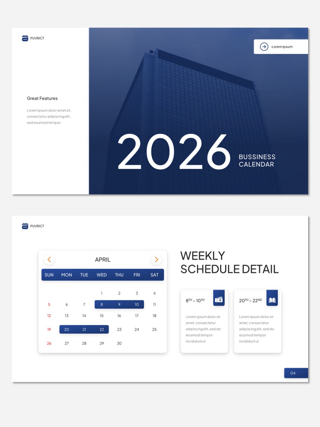 极简现代商务工作计划日程规划日历PPT模板