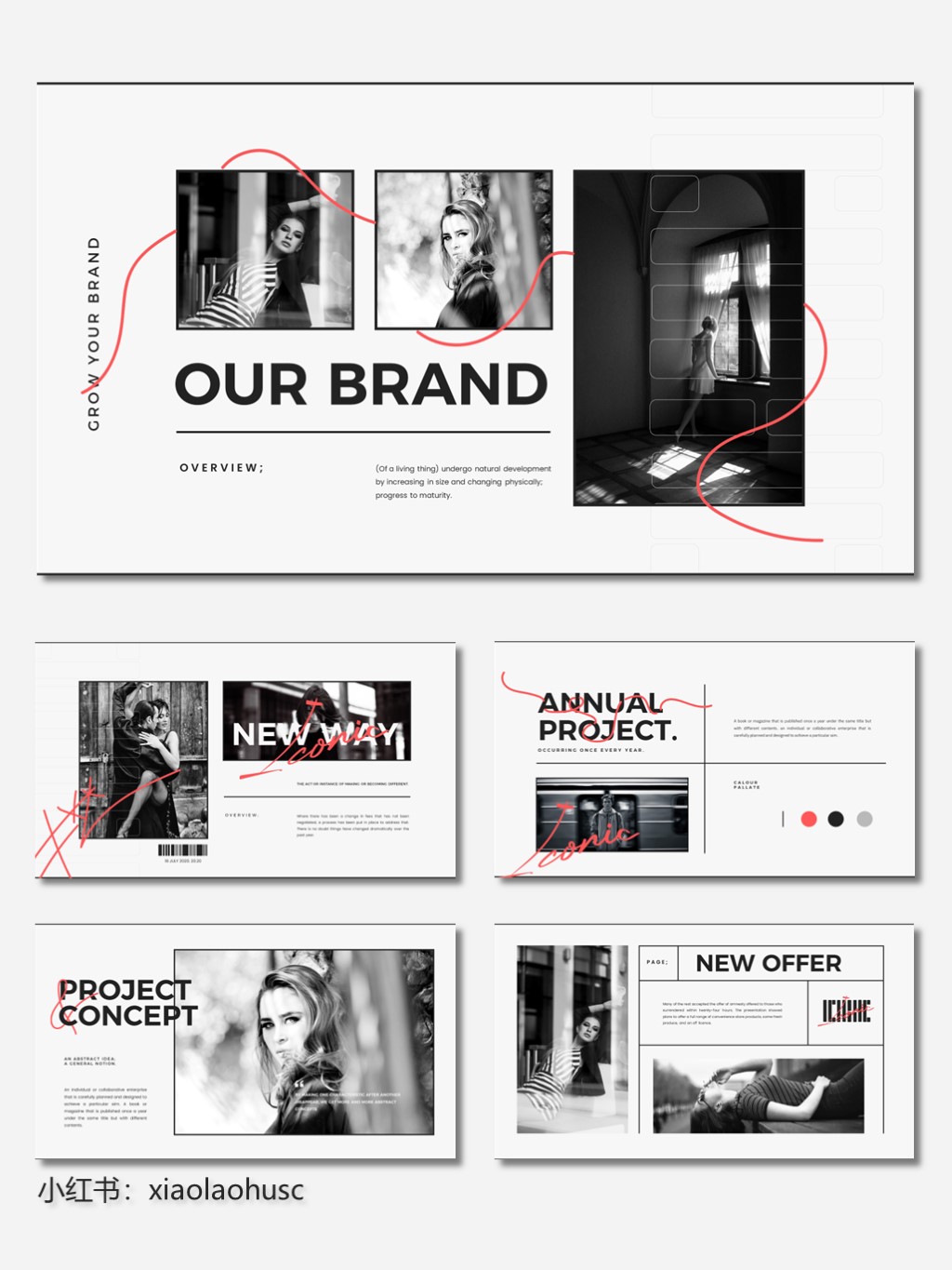 黑色线条框风格PPT模板