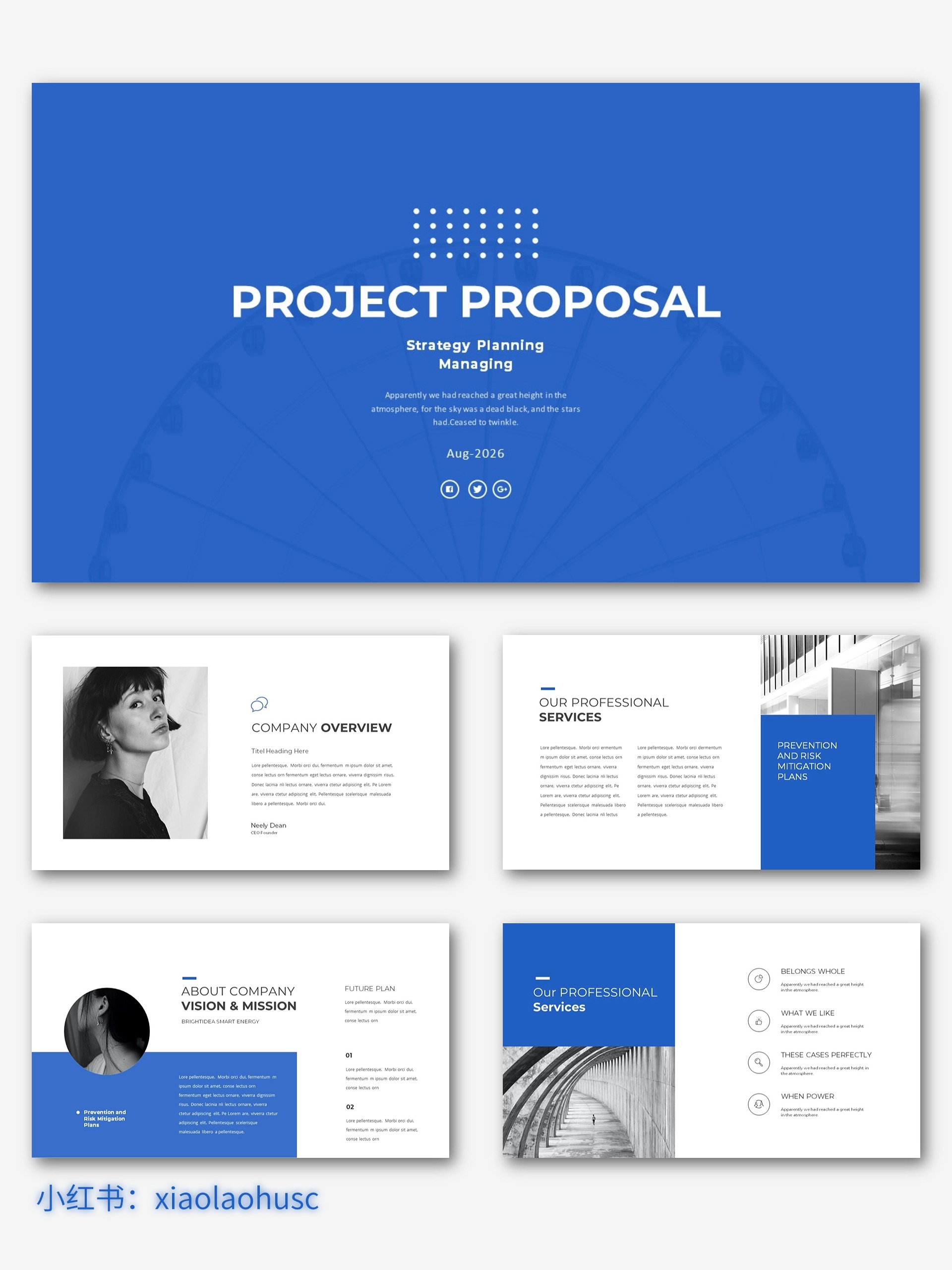 高级蓝色项目提案商务通用PPT模板
